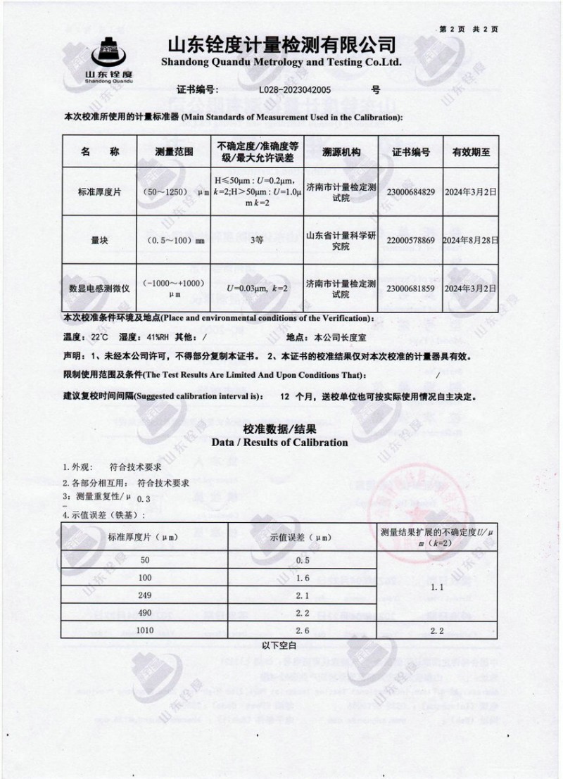检测仪器报告证书:涂层测厚仪