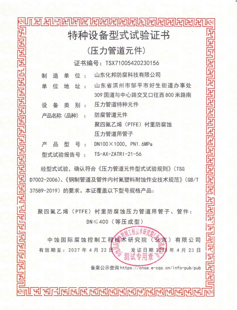 压力管道元件型式试验证书